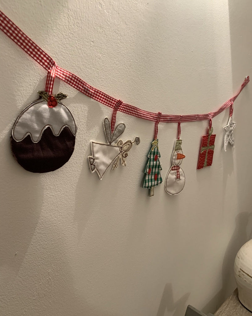 Please note that I use many different fabrics, each picture will differ slightly from the one shown and fabric colours may vary. Also please note a sewing machine is used to give a ‘hand written’ quality and is not done on a computerised machine.