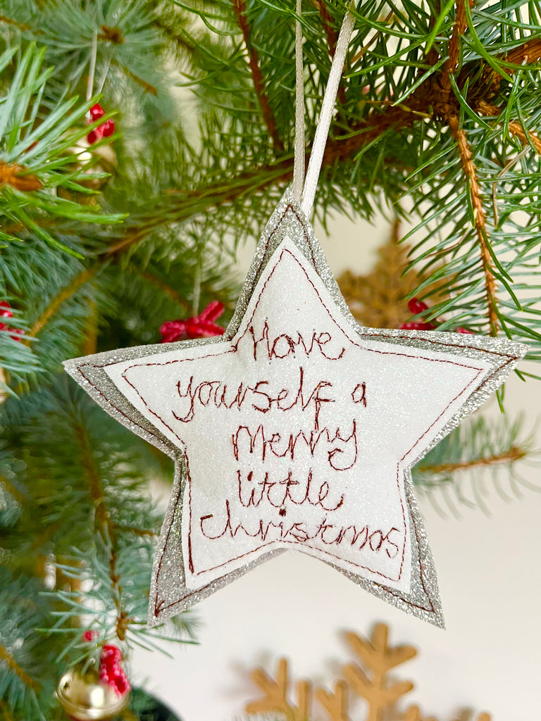 Avaliable in Gold, Silver or White glittery fabric. Available with 6 different Christmas wording.