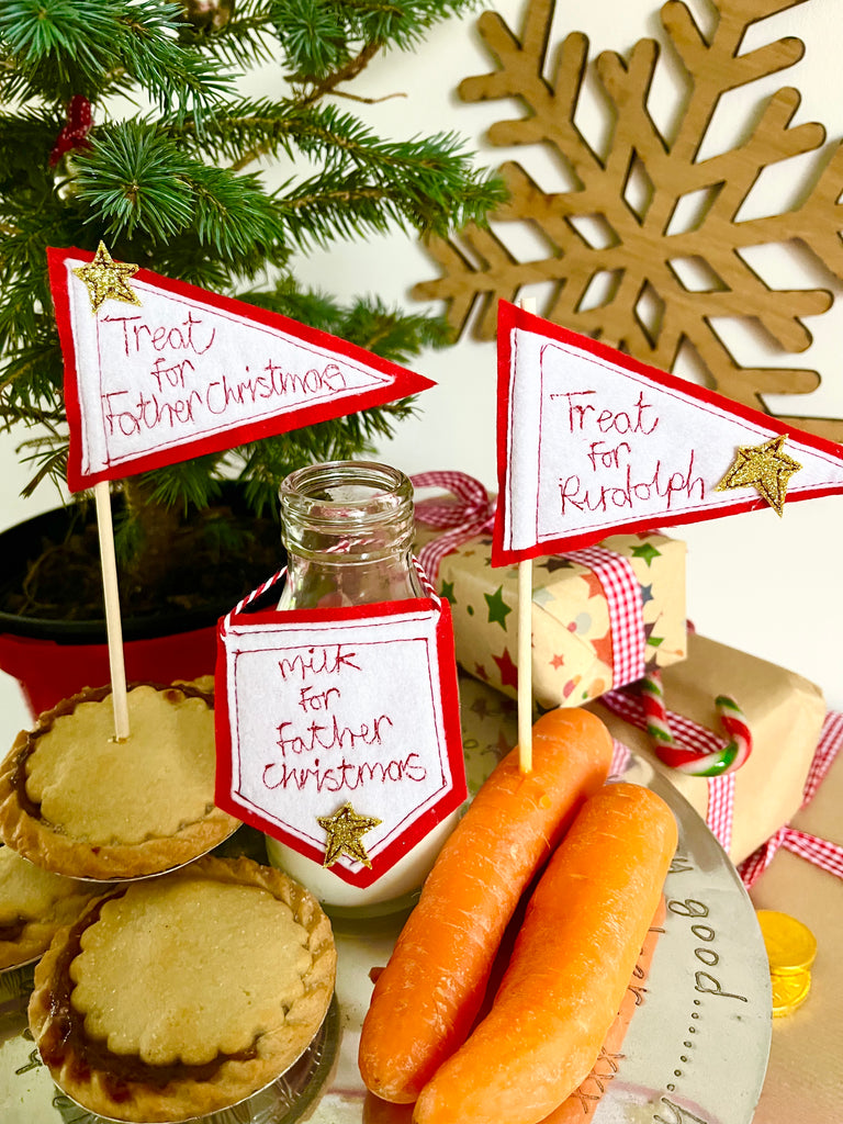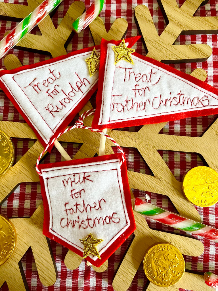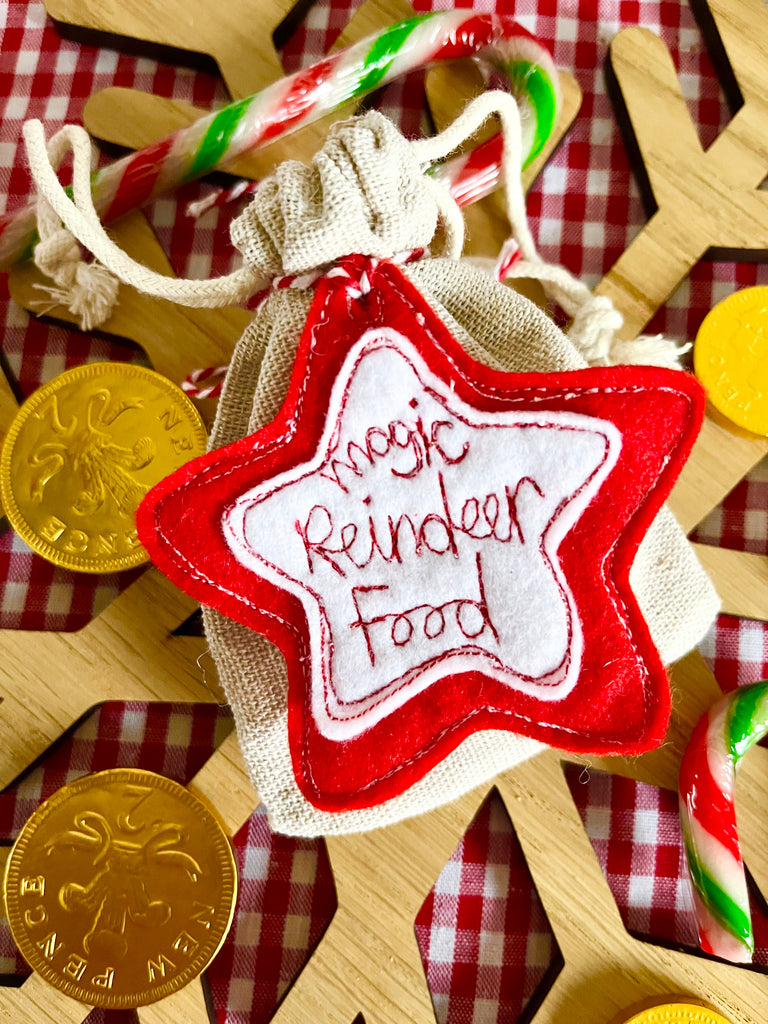 The Pack includes magic reindeer food, 'believe' jingle bell, Father Christmas Key, Nice List badge and Flags to show Father Christmas and Rudolph his treats, they all come in a little bag to store them in.