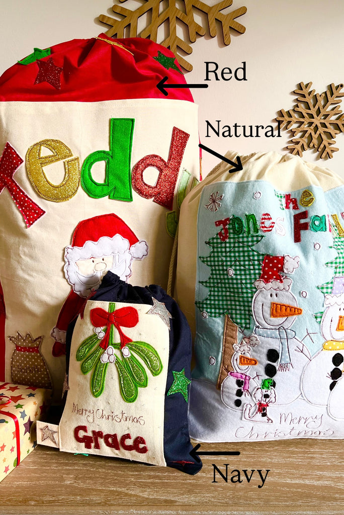 These lovely personalised Christmas Santa Sacks are a beautiful way to deliver Christmas presents to all your loved ones at Christmas time, which can be used year after year.